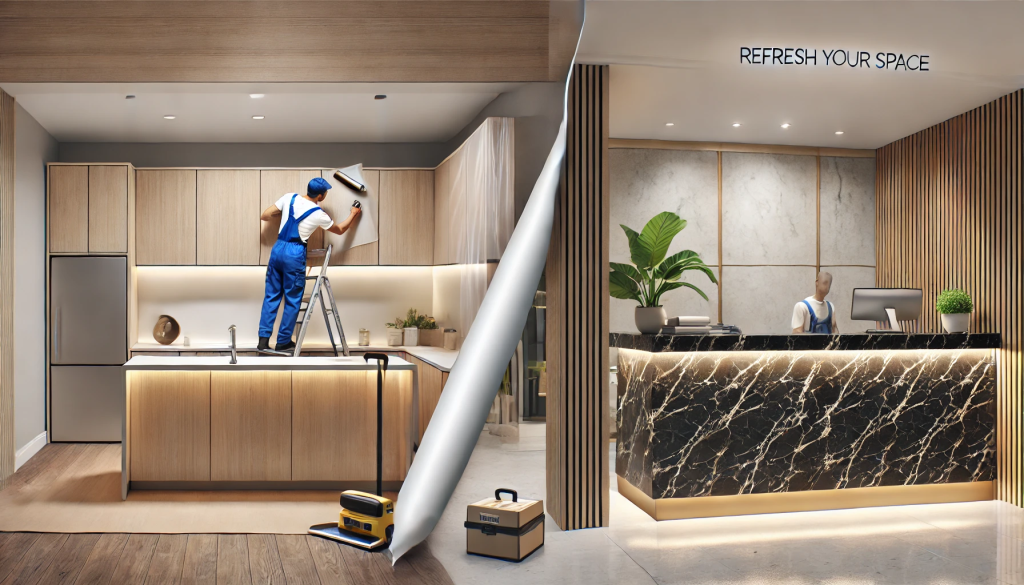 (technique qui consiste à recouvrir d’un revêtement adhésif architectural une surface à laquelle on veut changer l’aspect visuel)