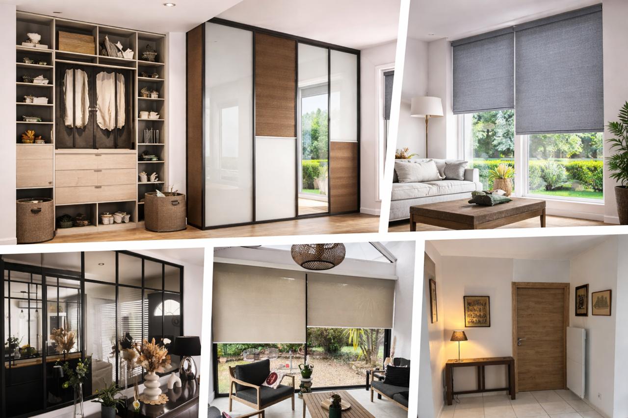 Séparer deux espaces avec une verrière ou une cloison vitrée, amenager l’intérieur d’un placard existant, créer un placard avec ses portes coulissantes ou pivotantes, concevoir son dressing standard ou sur mesure, choisir des stores intérieurs , s’équiper de moustiquaires pour des nuits d’été paisibles.