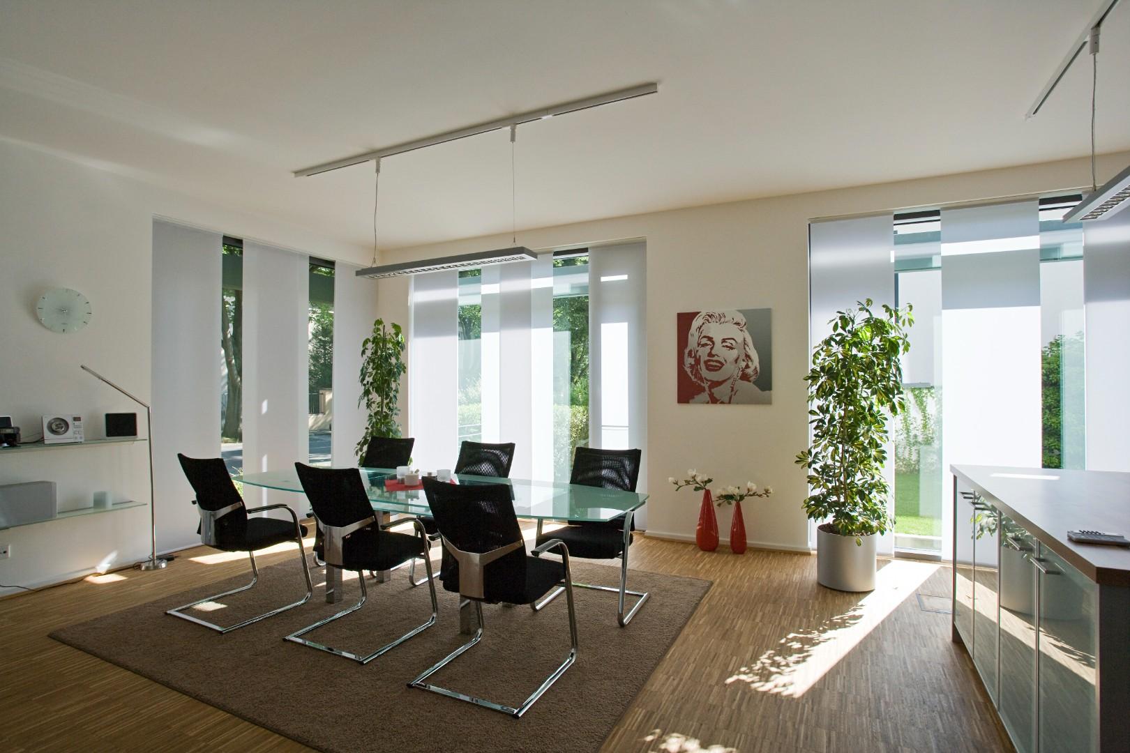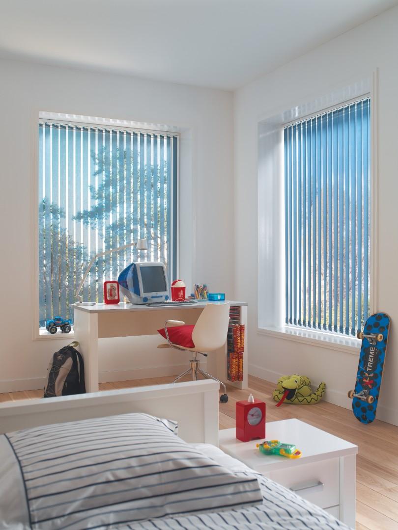 Idéal pour les intérieurs contemporains, les baies coulissantes, les fenêtres aux formes spéciales ou les très grandes baies, il est aussi moderne et convivial grâce à sa ligne épurée. Les lames suivent l’orientation du soleil et permettent de diriger la lumière de façon optimale. Il existe 2 largeurs de bandes : 89 ou 127mm, elles peuvent être de différentes couleur, en tissu ou en pvc...