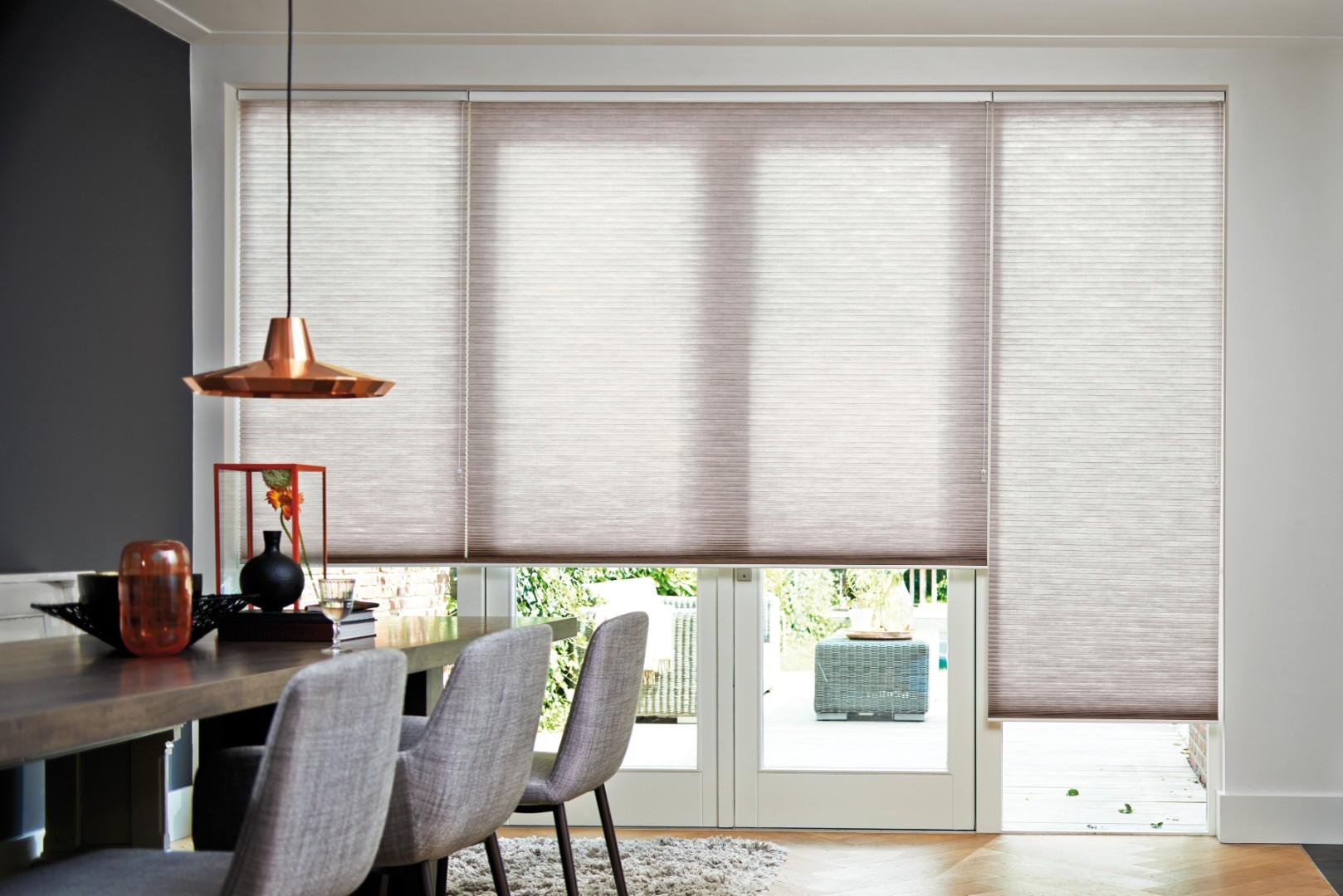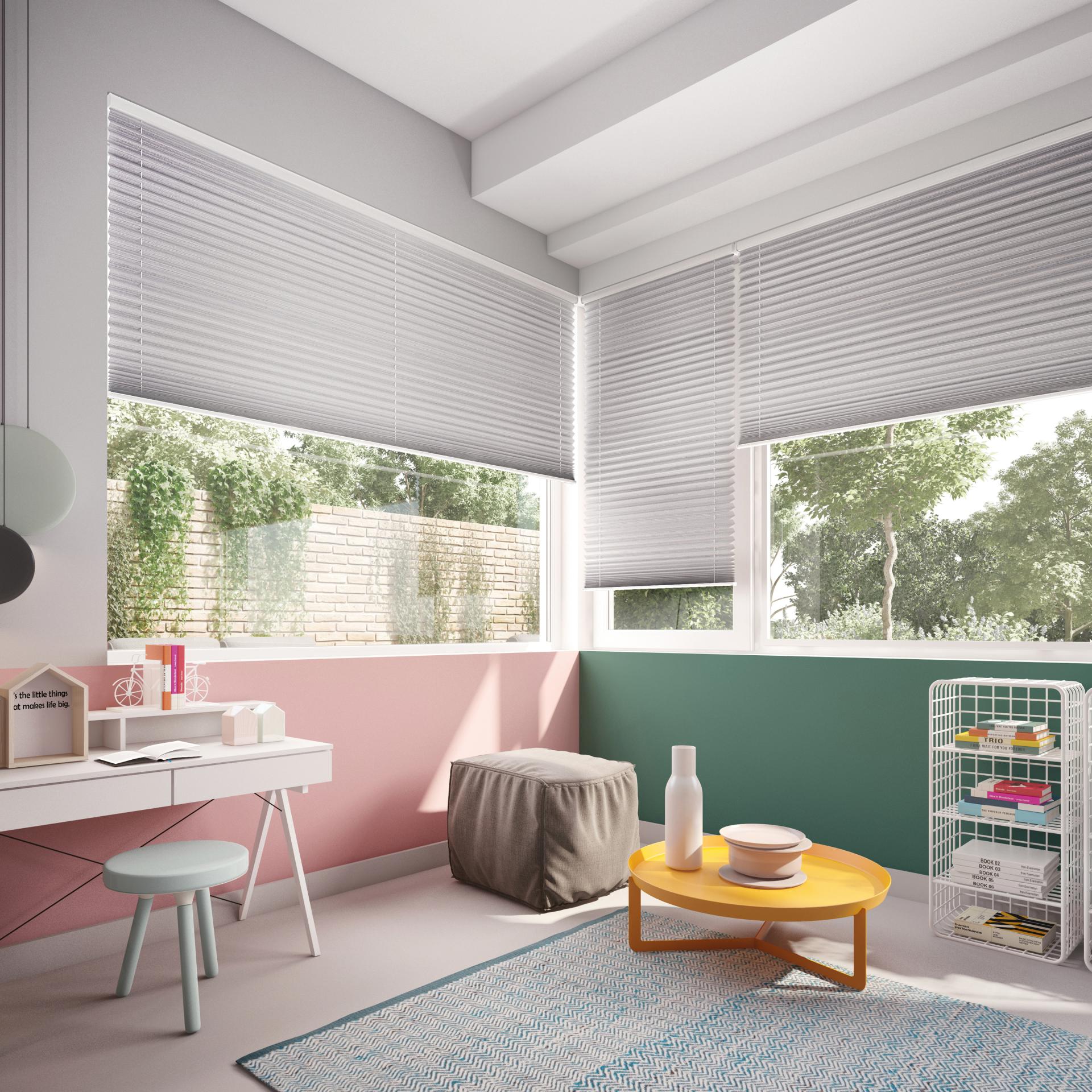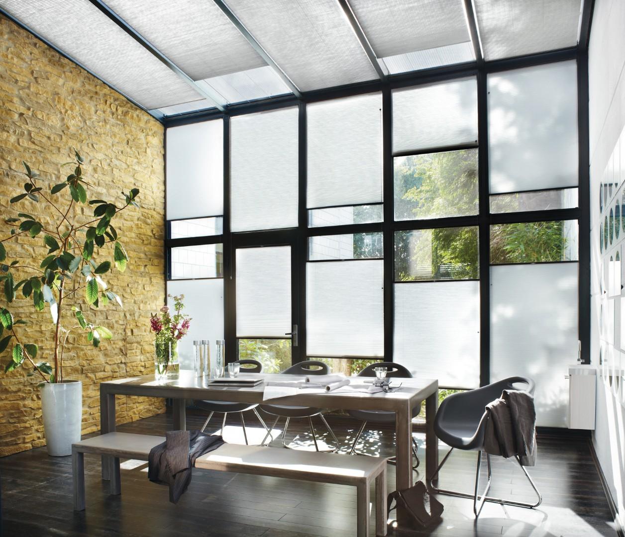 Le store plissé tamise la lumière et protège de la chaleur.