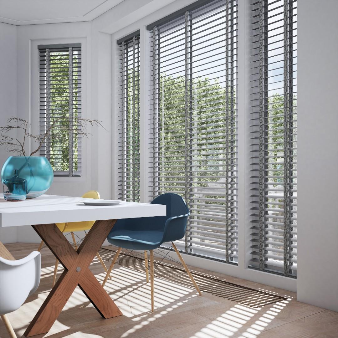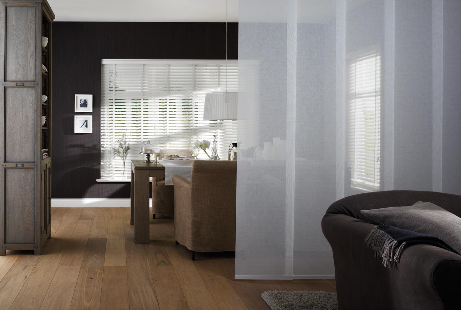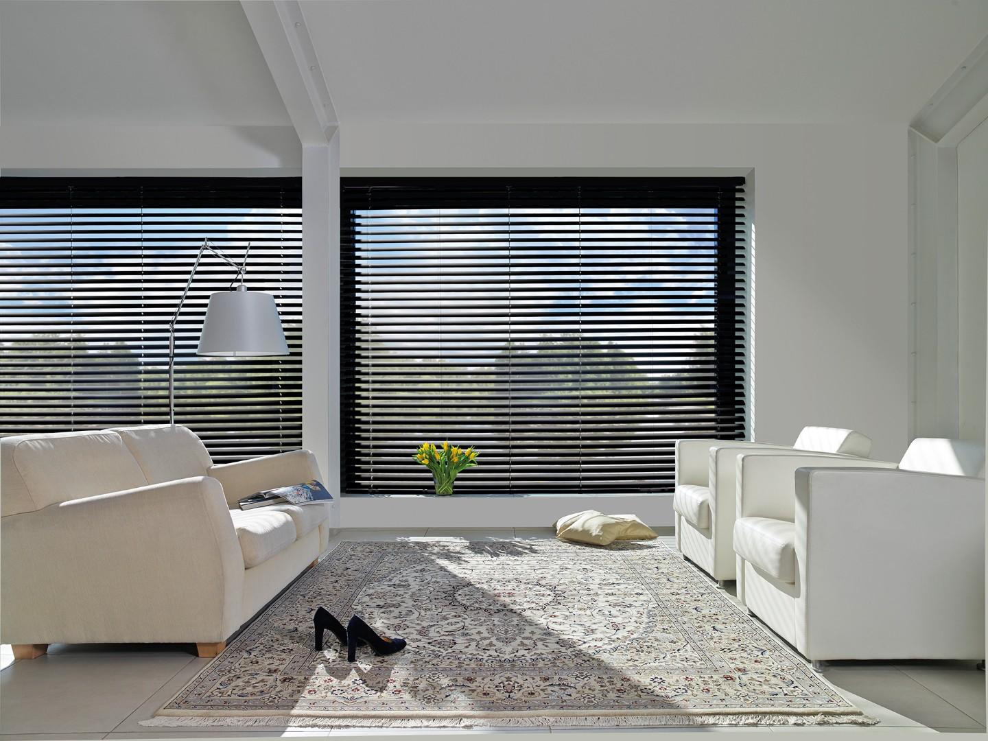 Ou bien toujours en aluminium mais en 50 mm; avec ses larges lames, ce vénitien stylé au design moderne est particulièrement adapté pour les intérieurs contemporains.